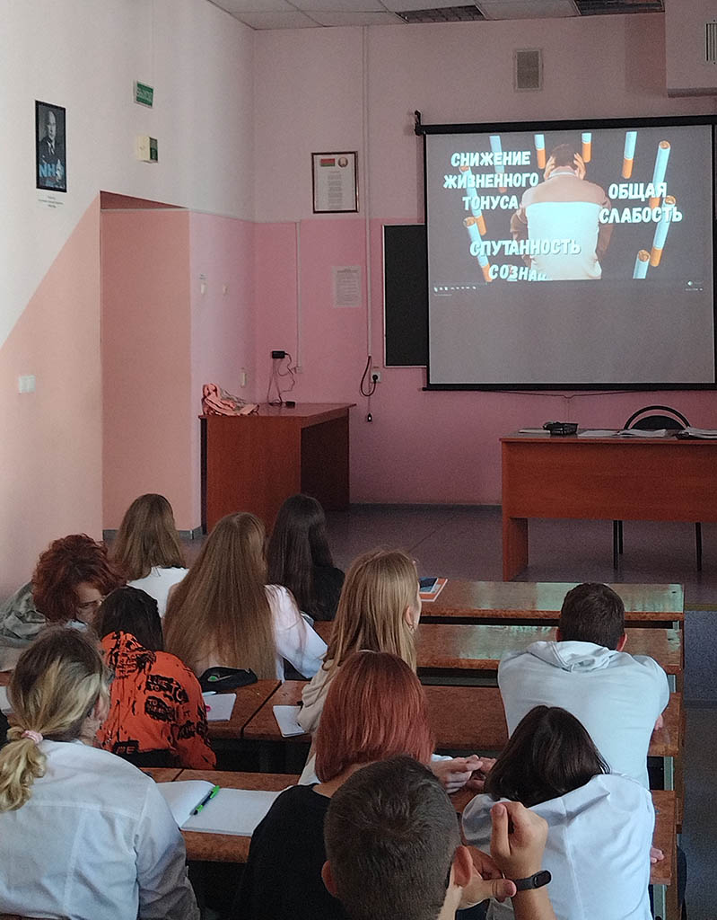 Студенты увидели видеоматериал о последствиях воздействия никотина на организм молодого человека.