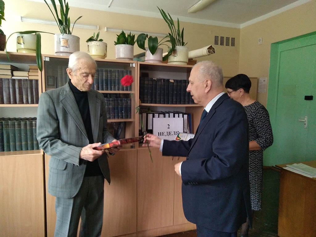 Поздравление с днем рождения и слова благодарности за многолетний труд (более 40 лет) в академии Валерию Степановичу Козлову передал от ректората и профкома академии председатель профкома сотрудников УО ВГАВМ Юрий Александрович Бородин.