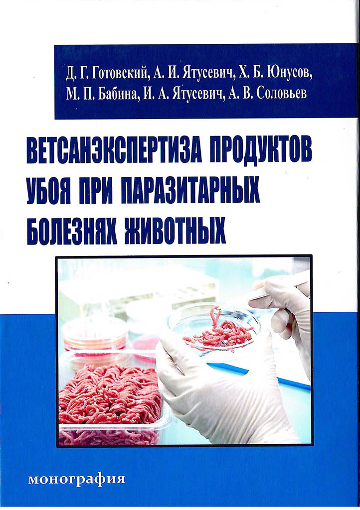 В соответствии с планом международного сотрудничества учеными нашей академии (Готовский Д.Г., Ятусевич А.И., Бабина М.П., Ятусевич И.А., Соловьев А.В.) и Самаркандского государственного университета ветеринарной медицины, животноводства и биотехнологий (Юнусов Х.Б.) издана коллективная монография «Ветсанэкспертиза продуктов убоя при паразитарных болезнях животных» (2025 г., 320 с.).