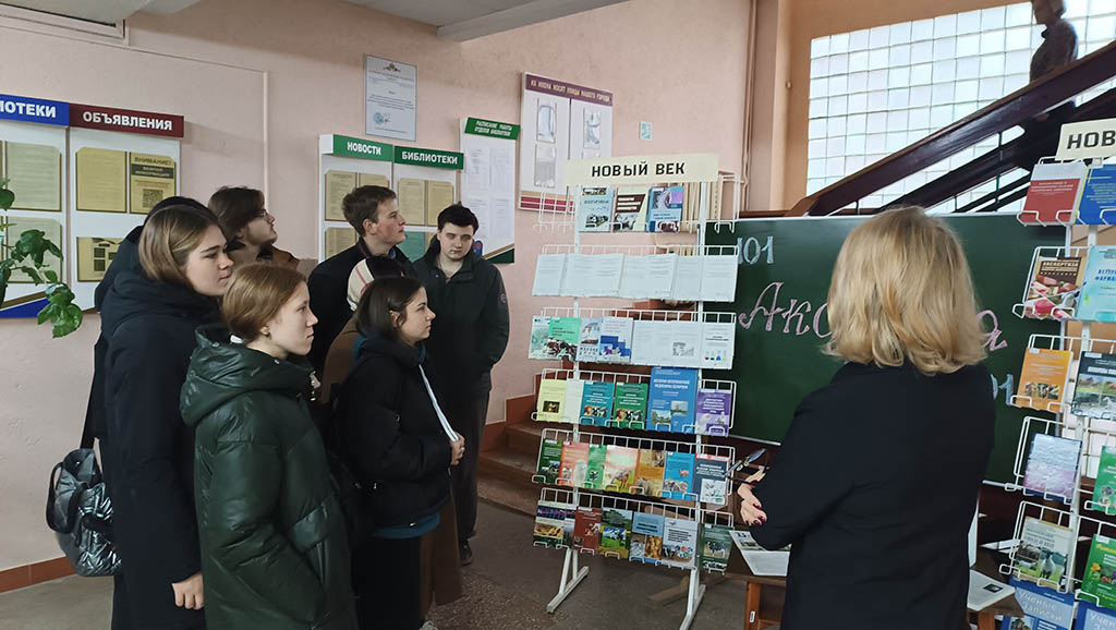 17 ноября 2025 года студенты 2 куса 8 группы факультета ветеринарной медицины в рамках проведения студенческого марафона, посвящённого Дню работников АПК, посетили выставку «В новое с новыми достижениями», организованную в библиотеке ВГАВМ. Перед студентами выступили сотрудники библиотеки и рассказали не только о новых поступлениях, но и об истории библиотеки и уникальных экземплярах, находящихся в ее фондах.
