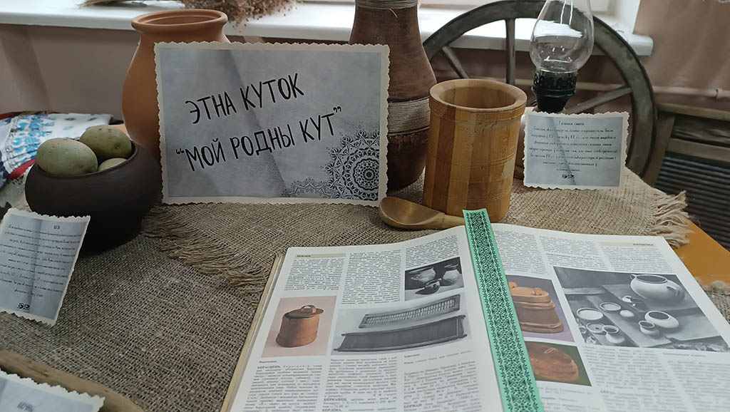 Также привлек внимание студентов организованный в фойе библиотеки «Этна-куток «Мой родный кут», в котором были представлены предметы быта сельских жителей прошлого века.