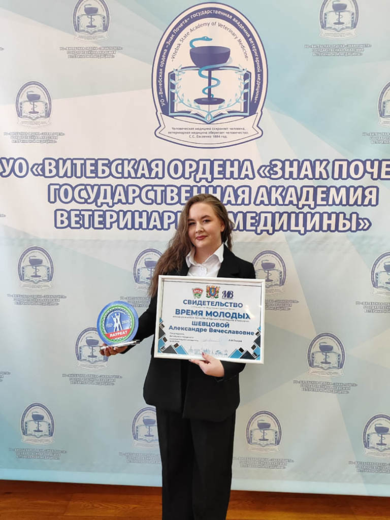 Городская молодежная премия “Время молодых” присуждена Александре Шевцовой, студентке академии.