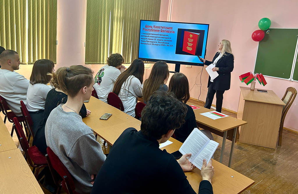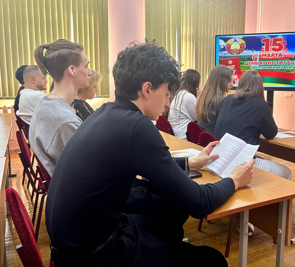 Особый интерес у аудитории вызвала тематическая викторина, где студенты продемонстрировали свои знания Конституции Республики Беларусь.
