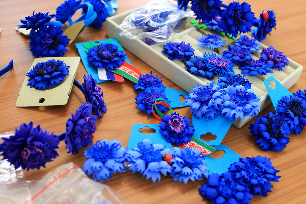 Участницы мастер-класса создавали брошь «Василёк» из нежного и пластичного материала — фоамирана. Этот выбор не случаен: работа с фоамираном позволяет добиться удивительной реалистичности и изящества, что как нельзя лучше отражает красоту и многогранность самого цветка.