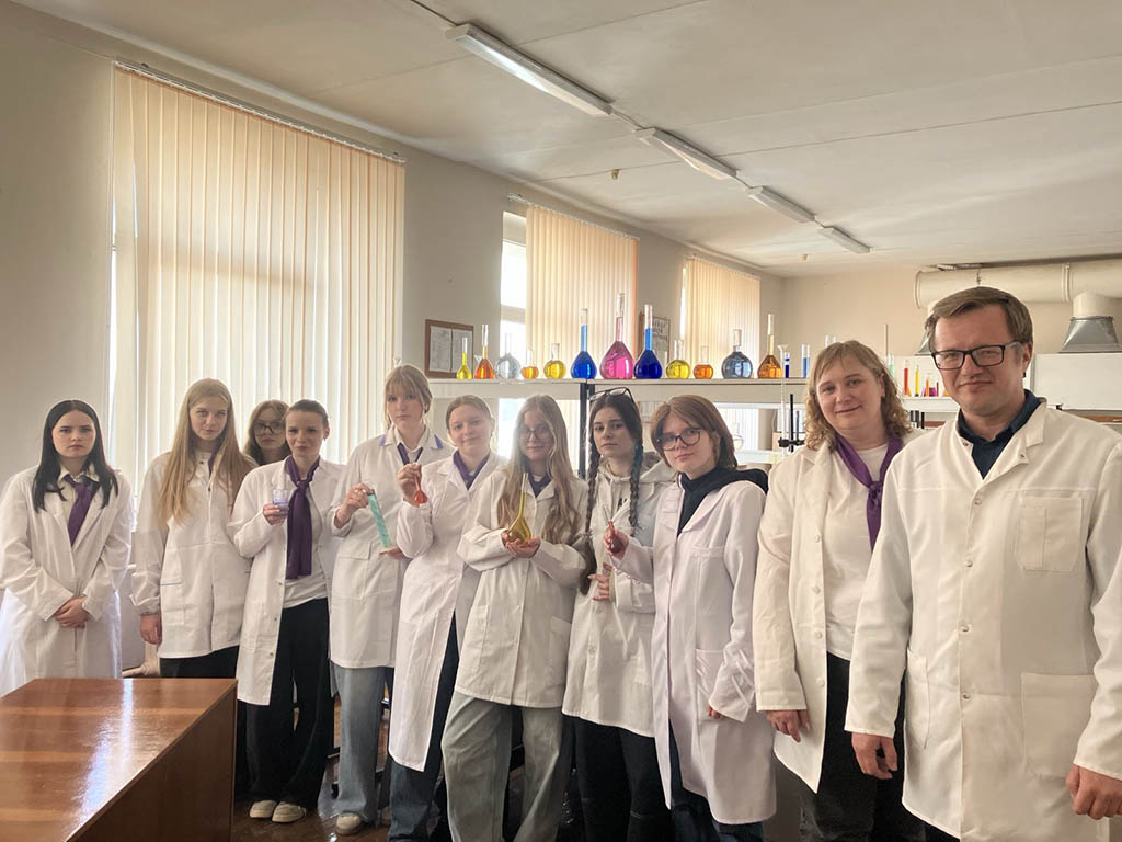 В течение недели на кафедре химии проходили лабораторные занятия с учащимися средних школ Полоцкого района, во время которых ребята погрузились в удивительный мир химии. Все занятия проходили в виде лабораторных работ, в которых сами школьники могли принять непосредственное участие. Кроме «развлекательной» части, где ребята могли не только посмотреть на интересные и красочные химические опыты, но и часть опытов, строго соблюдая правила техники безопасности при работе в лаборатории, провести самостоятельно под руководством старшего преподавателя кафедры химии Бизунова А.В. Также школьники совместно с доцентом кафедры химии Громовой Л.Н. делали лабораторную работу по титриметрическому анализу, которая проводится только в курсе Высшей школы и имеет большое практическое значение. Путешествуя по увлекательной стране «Химия», ребята задавали много вопросов и проявляли живой интерес к проводимым опытам. Занятия на кафедре химии «утяжелили» багаж знаний школьников и завершились с хорошим настроением, большим количеством полученных положительных эмоций и красочных фотографий у ребят!