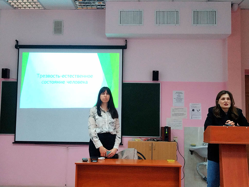 В своём выступлении Анна Константиновна рассказала о причинах возникновения алкоголизма, его симптомах и стадиях, а также уделила внимание вопросу о вреде алкоголя и его воздействии на организм человека, о физиологических последствиях злоупотребления алкоголя.