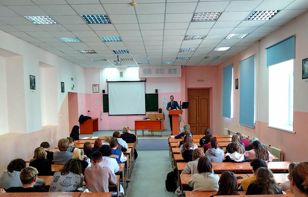 Кирилл Александрович озвучил вопросы профилактики насилия, распространения наркотических и психотропных веществ, порнографических материалов, киберпреступности и предупреждения экстремизма, а также ответил на вопросы, интересующие студентов.