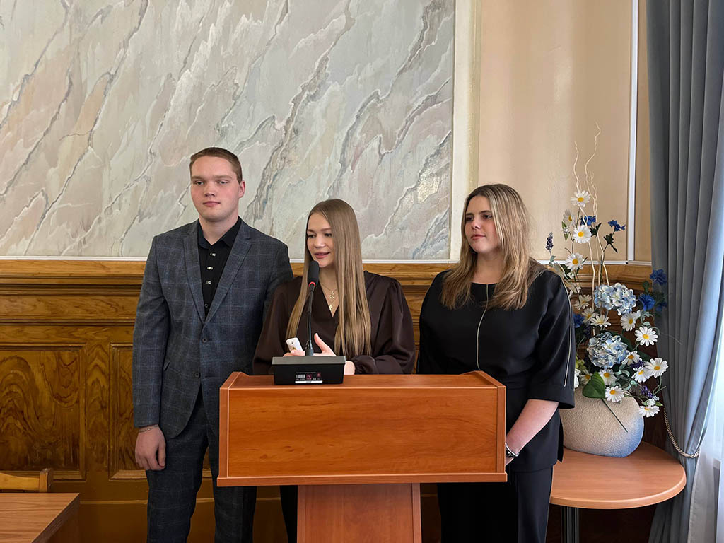Ректор Ольга Сергеевна Горлова вручила свидетельства о назначении стипендии Президента Республики Беларусь за отличную успеваемость и особые успехи в научно-исследовательской деятельности студенткам факультета ветеринарной медицины Татьяне Калюжной и Екатерине Кагукиной, студенту биотехнологического факультета Владимиру Старомужеву.
