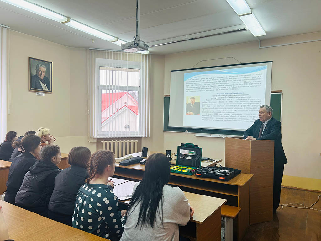 В рамках сотрудничества 17 апреля 2026 года кафедру гигиены животных имени профессора В.А. Медведского посетили учащиеся 3-го курса специальности «Производство продукции животного происхождения» Аграрного колледжа УО ВГАВМ.